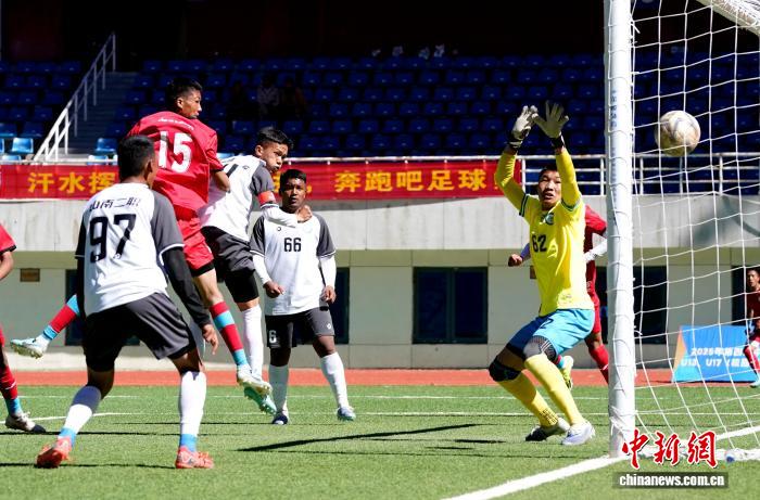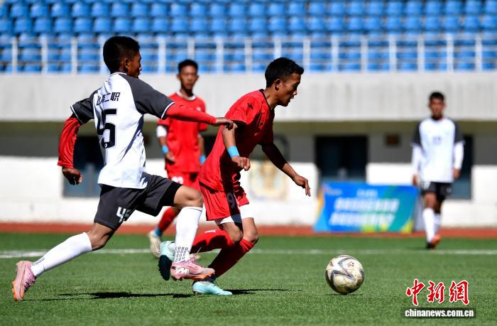 10月21日,2025年第四屆中國(guó)青少年足球聯(lián)賽西藏賽區(qū)男子U17(校園高中)組山南代表隊(duì)(白色球衣)與昌都代表隊(duì)(紅色球衣)比賽中。2025年第四屆中國(guó)青少年足球聯(lián)賽西藏賽區(qū)男子U13、U17(校園初、高中)組比賽將持續(xù)至10月22日,共有14支代表隊(duì)、300余名運(yùn)動(dòng)員參賽。各支代表隊(duì)以單循環(huán)賽制展開(kāi)多輪激烈角逐。中新社記者 李林 攝