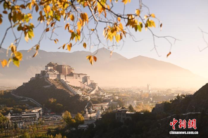 10月22日清晨,薄霧尚未散盡,西藏拉薩團(tuán)結(jié)公園的黃葉與布達(dá)拉宮相映成趣,勾勒出高原秋日的獨(dú)特畫卷。中新社記者 貢嘎來松 攝