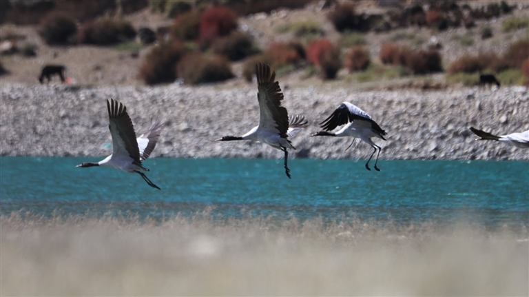 隨著天氣逐漸轉(zhuǎn)冷,素有“高原仙子”美稱的黑頸鶴開始南遷,前往西藏林周縣、墨竹工卡縣等地越冬。據(jù)悉,每年10月中下旬,黑頸鶴陸續(xù)飛抵雅魯藏布江中游河谷等地越冬。