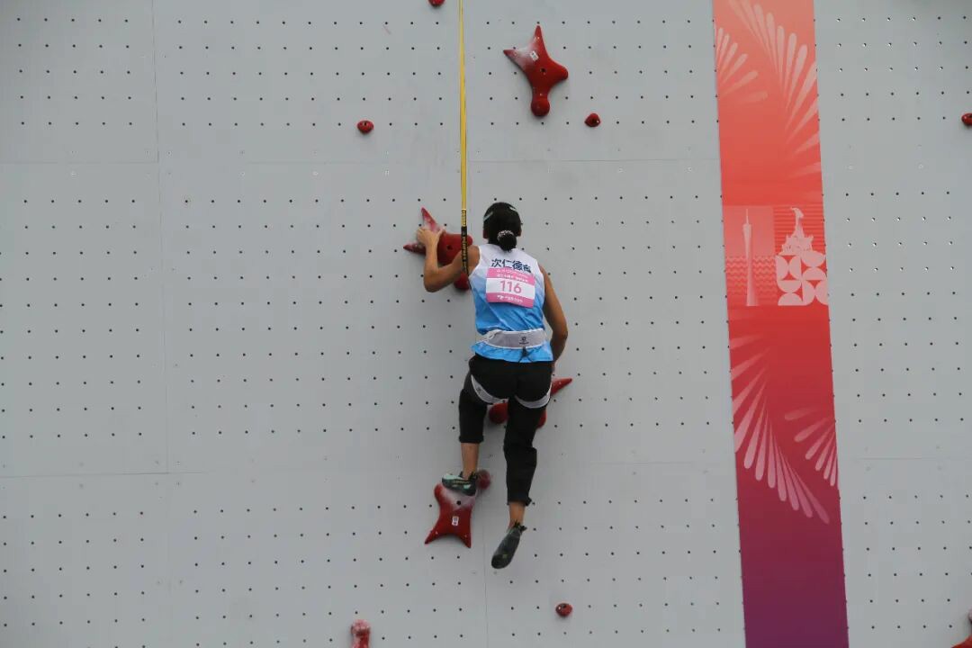 西藏隊桑珠尼瑪在十五運會攀巖比賽賽場上。