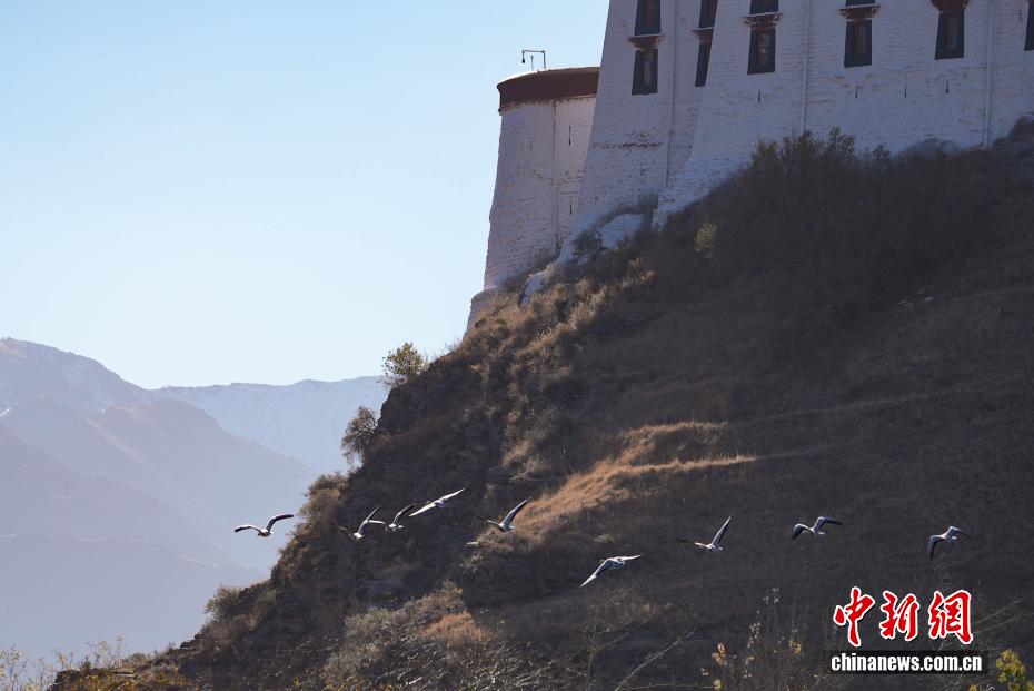 11月17日,西藏拉薩迎來大批越冬候鳥。拉薩河、宗角祿康公園等地,成為了它們的棲息天堂。在宗角祿康公園內(nèi),赤麻鴨、斑頭雁成群結(jié)隊,時而低頭覓食,時而水中嬉戲。它們的身影引得市民和游客紛紛駐足觀賞、拍照留念,構(gòu)成了一幅人與自然和諧共生的美麗畫卷。圖為斑頭雁與布達(dá)拉宮同框。貢確 攝