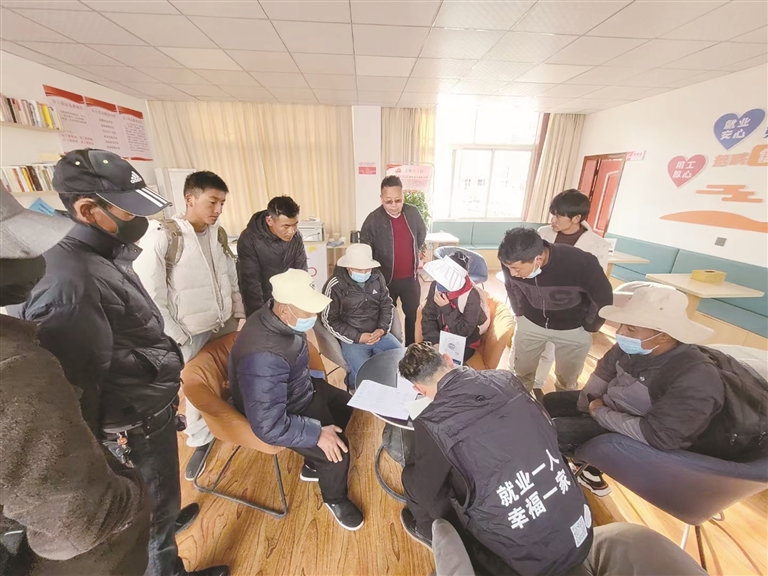 平措次仁來自日喀則市薩嘎縣,農(nóng)閑時來拉薩打零工,從事搬貨物、做雜活已有8年了?!耙郧霸趭Z底路路邊攬活,最怕刮風(fēng)下雨,冬天凍得手腳發(fā)麻,夏天曬得脫皮?!彼嬖V記者,過去找活全靠“碰運(yùn)氣”,每天早上7點(diǎn)就得去路口排隊,不僅要和幾十號人競爭,還常常遭遇雇主壓薪、欠薪的情況。“有一次,我干了半個月裝修活,雇主說過幾天結(jié)工資,結(jié)果之后再也聯(lián)系不上,那筆工錢至今都沒要回來?!?/p>