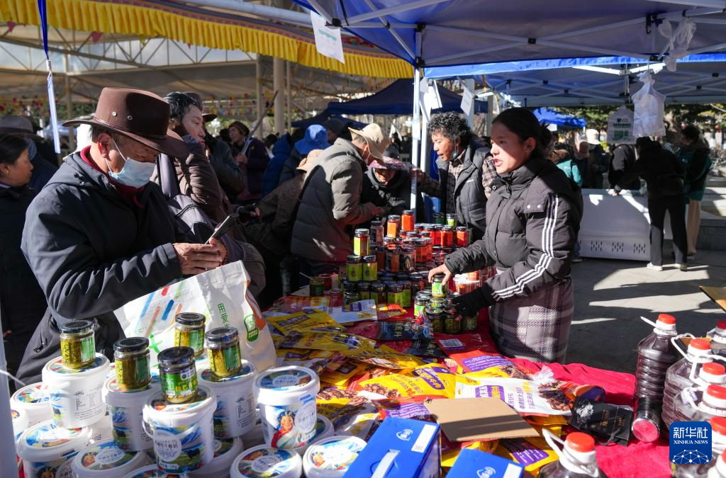12月10日,群眾在拉薩市宗角祿康公園的供銷大集上挑選商品。新華社記者 晉美多吉 攝