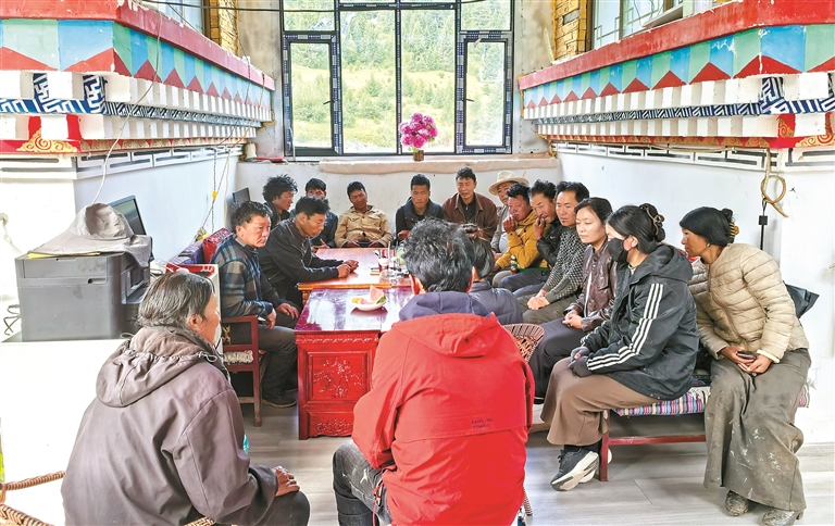 圖為洛隆縣馬利鎮(zhèn)布許村的“庭院議事屋”內(nèi),村干部與村民圍坐商討發(fā)展大計。記者 貢秋曲措 攝