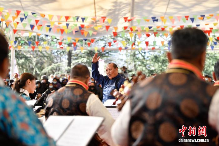 圖為群眾音樂會(huì),民樂合奏《我的家鄉(xiāng)好》精彩上演。中新社記者 貢嘎來松 攝