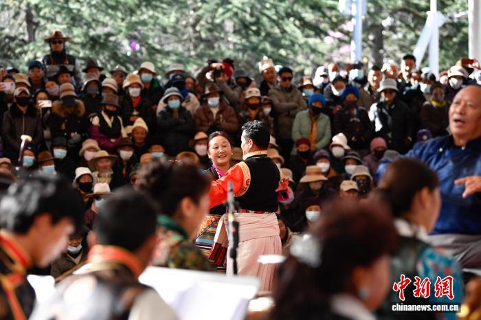 12月20日,為熱烈慶祝西藏自治區(qū)成立60周年,由西藏自治區(qū)文化和旅游廳主辦的格?;ㄑ莩黾尽履辍拔覀兊墓?jié)日 群星薈萃”群眾音樂會(huì)在拉薩宗角祿康公園精彩上演。音樂會(huì)節(jié)目豐富多樣,涵蓋民樂合奏、少兒藏戲、獨(dú)唱重唱等多種形式。傳統(tǒng)韻味與時(shí)代氣息交融,各族群眾以歡歌贊頌發(fā)展巨變,共迎美好新年。