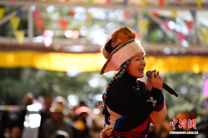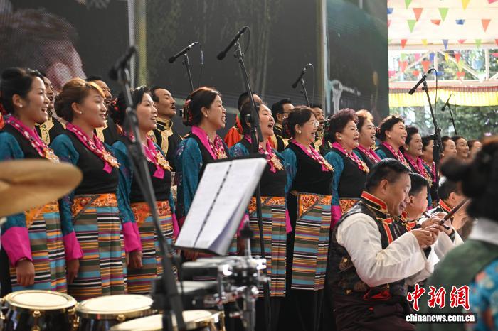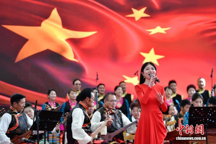 圖為群眾音樂會(huì)獨(dú)唱《祝福祖國》。中新社記者 貢嘎來松 攝