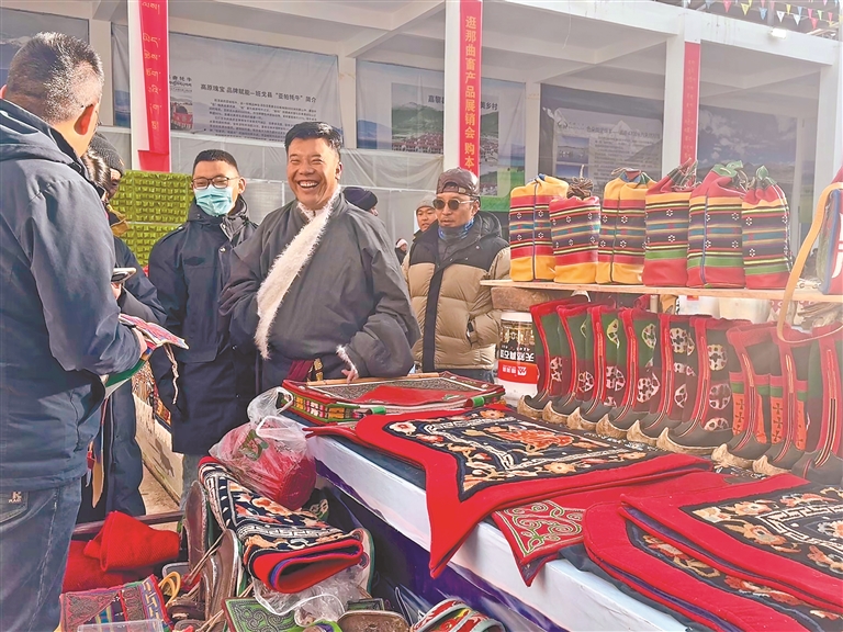走進(jìn)展銷會(huì)現(xiàn)場(chǎng),最直觀的感受就是品類全、品質(zhì)好,藏北特色撲面而來。全市11個(gè)縣(區(qū))的1485家參展商齊聚于此,帶來100余種高原特色產(chǎn)品,把草原上的好東西都搬到了消費(fèi)者面前。特色畜產(chǎn)品是當(dāng)之無愧的消費(fèi)“主力軍”,“那曲牦?!钡乩順?biāo)志產(chǎn)品、嘎爾德等區(qū)域品牌,憑借“云端牧場(chǎng)、黃金奶源”的獨(dú)特品質(zhì),一亮相就成了爆款,不少市民圍著展臺(tái)詢價(jià)選購(gòu)。