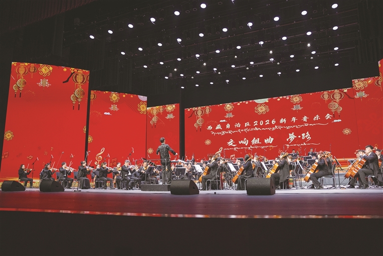 2025年12月30日晚8時(shí),西藏自治區(qū)2026新年音樂會(huì)在西藏大劇院奏響發(fā)展新聲。本場(chǎng)音樂會(huì)由西藏自治區(qū)黨委宣傳部指導(dǎo),自治區(qū)文化和旅游廳、西藏廣播電視臺(tái)主辦,西藏自治區(qū)歌舞團(tuán)、藏劇團(tuán)及西藏演藝有限責(zé)任公司承辦,特邀中央歌劇院指導(dǎo),西藏自治區(qū)歌舞團(tuán)、藏劇團(tuán)與中央歌劇院交響樂團(tuán)聯(lián)合演出,以“以古照今 樂動(dòng)新年”為主題,將歷史厚重與時(shí)代溫度熔于一爐,為現(xiàn)場(chǎng)觀眾獻(xiàn)上兼具精神洗禮與藝術(shù)享受的聽覺盛宴,以文藝之姿迎接2026年的到來。