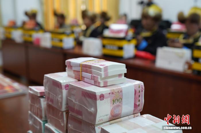 圖為在分紅現(xiàn)場,村民數(shù)錢。曲杰 攝