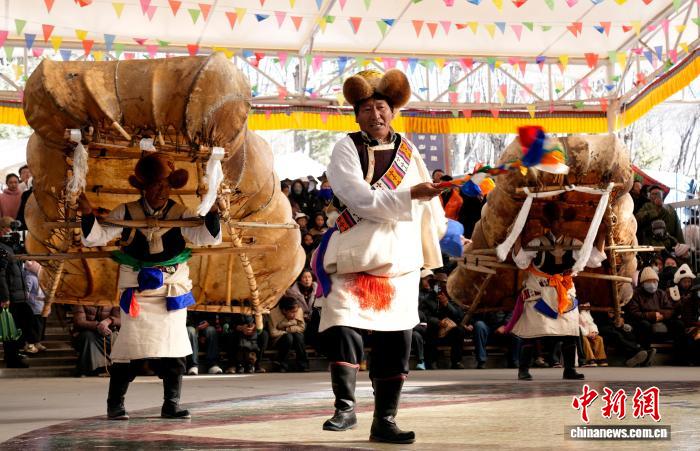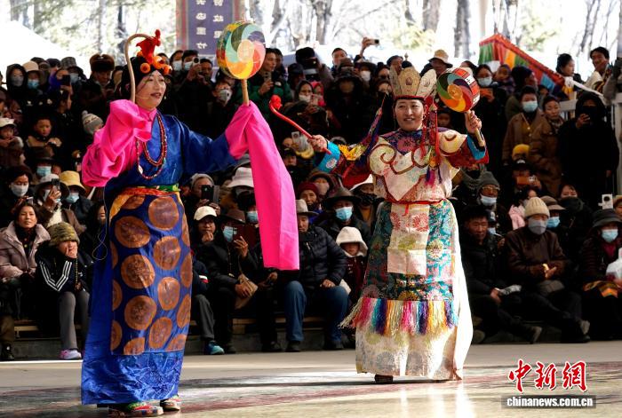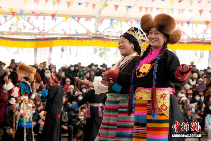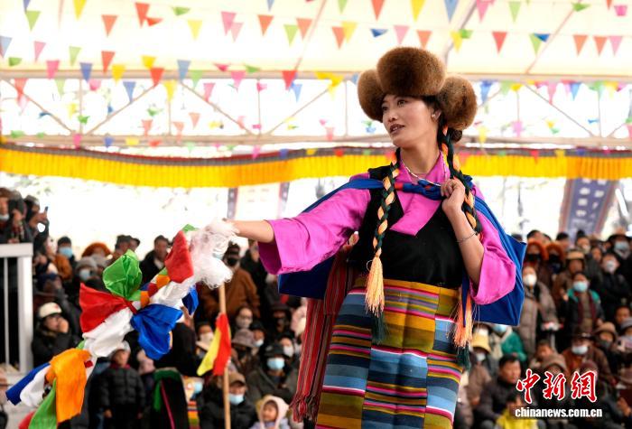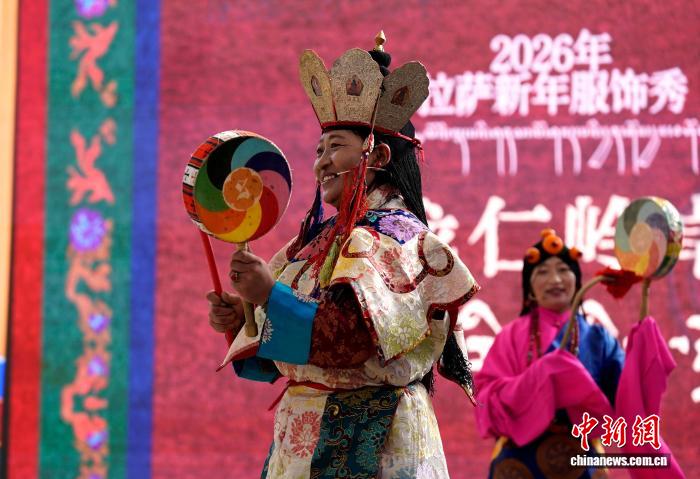 1月2日,“新歲風華,衣彩拉薩”2026年拉薩新年服飾秀子活動在布達拉宮腳下的宗角祿康公園舉行?;顒臃譃槔_非物質文化遺產代表性項目演藝服飾秀與農牧民婦女“村T”秀兩部分,通過演藝服飾與日常生活勞動服飾及場景的展示,生動呈現(xiàn)拉薩獨特的地域文化與民族風情。圖為拉薩非物質文化遺產代表性項目演藝服飾秀現(xiàn)場。中新社記者 李林 攝