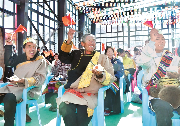 這一幕,發(fā)生在1月6日日喀則市定結(jié)縣郭加鄉(xiāng)政府禮堂里舉行的“感恩奮進(jìn)新居樂業(yè),暖冬六送情滿家園”活動現(xiàn)場。