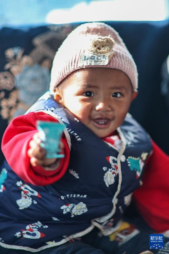 1月5日,在西藏定日縣長所鄉(xiāng)雜村,母親朋瓊在家中逗弄次仁拉巴。新華社記者 姜帆 攝