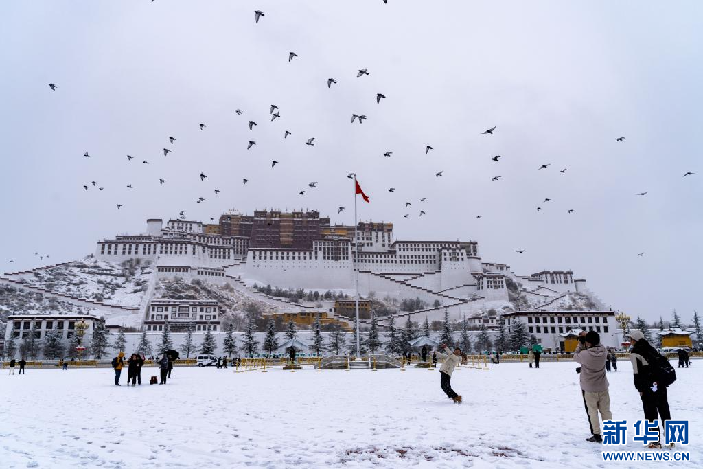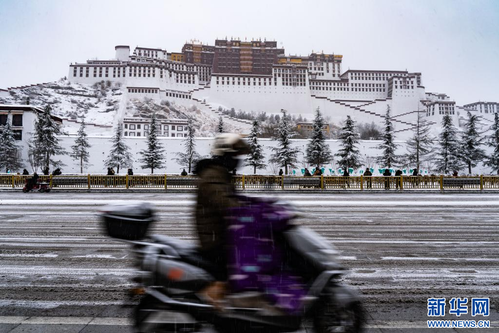 當(dāng)日是農(nóng)歷臘月初八,西藏拉薩市迎來降雪,城區(qū)銀裝素裹,雪景分外優(yōu)美,吸引了眾多市民外出拍攝游玩。