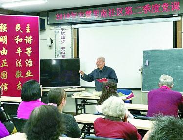 日前,北京市朝陽區(qū)亞運村街道舉辦了“我為身邊黨員點贊”主題黨日活動。圖為被群眾點贊的老黨員黃寅生在給社區(qū)黨員群眾講黨課。曹雷 攝/光明圖片