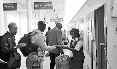 由中國(guó)企業(yè)采用全套中國(guó)標(biāo)準(zhǔn)和中國(guó)裝備建造的非洲第一條跨國(guó)現(xiàn)代電氣化鐵路——亞吉鐵路于2018年1月正式投入商業(yè)運(yùn)營(yíng)。圖為3月25日,在埃塞俄比亞首都亞的斯亞貝巴,列車(chē)員在亞吉鐵路拉布車(chē)站檢票。新華社發(fā)