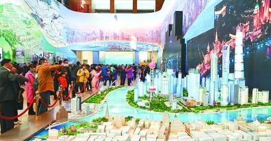 “偉大的變革——慶祝改革開放40周年大型展覽”在國家博物館隆重開幕。圖為觀眾在參觀上海陸家嘴沙盤模型。新華社發(fā)