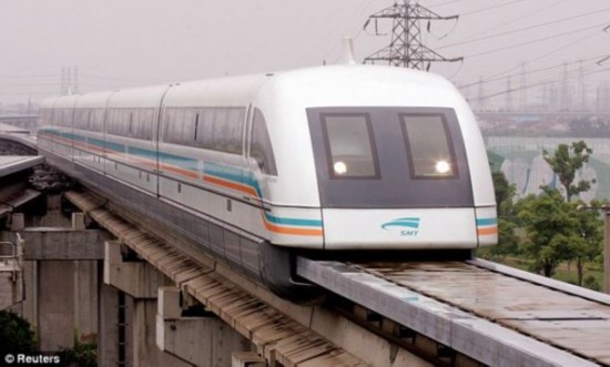連接浦東機(jī)場(chǎng)和上海新金融區(qū)的國內(nèi)首列磁懸浮列車(圖片來源:央視網(wǎng))