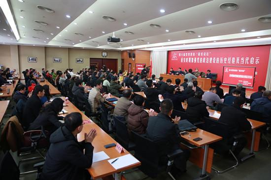 在主旨發(fā)言和分論壇階段,石仲泉、徐焰、龍?jiān)傧?、龔云、戴焰軍、辛逸、韓強(qiáng)、包心鑒等知名學(xué)者和專家教授,圍繞加強(qiáng)政治建設(shè)的重大意義、理論邏輯、實(shí)踐要求、做法經(jīng)驗(yàn)等問題,進(jìn)行深入交流研討,貢獻(xiàn)思想智慧和研究成果。