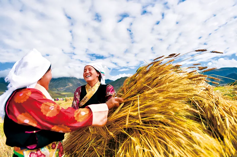 經(jīng)黨中央批準、國務(wù)院批復(fù),自2018年起,將每年農(nóng)歷秋分設(shè)立為中國農(nóng)民豐收節(jié),這是第一個在國家層面為農(nóng)民設(shè)立的節(jié)日,進一步彰顯了“三農(nóng)”工作重中之重的基礎(chǔ)地位。 圖為2018年9月23日,首個中國農(nóng)民豐收節(jié),拉薩市林周縣松盤鄉(xiāng)松盤村兩名藏族農(nóng)民在田間。 新華社記者 覺果/攝