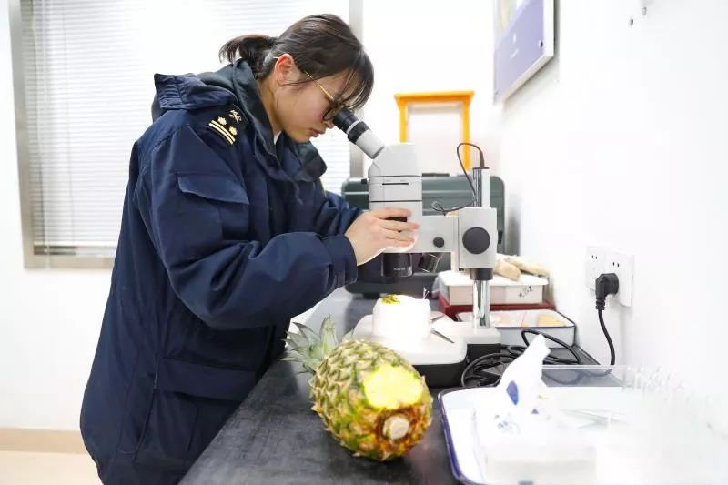 現(xiàn)場(chǎng),海關(guān)關(guān)員迅速進(jìn)行核查貨證,品名、數(shù)量、許可證、提運(yùn)單號(hào)、智利植檢證書,一一核對(duì)相符后按照規(guī)定比例抽查。一箱箱貼著“輸往中華人民共和國(guó)”中英文標(biāo)識(shí)的櫻桃被送上檢疫操作臺(tái)進(jìn)行感官檢驗(yàn),并對(duì)可疑果進(jìn)行剖果,甄別是否有地中海實(shí)蠅等檢疫性有害生物為害;揭下包裝箱標(biāo)簽,在數(shù)據(jù)平臺(tái)上查詢?cè)撆鷻烟业妮斎A櫻桃果園、包裝廠,確認(rèn)是否經(jīng)智利農(nóng)牧局(SAG)注冊(cè),并經(jīng)海關(guān)總署認(rèn)可。最后,要迅速抽取代表性的復(fù)合樣品,送實(shí)驗(yàn)室實(shí)施安全風(fēng)險(xiǎn)監(jiān)控,對(duì)農(nóng)殘和重金屬項(xiàng)目的針對(duì)性檢測(cè)。天剛蒙蒙亮,所有智利櫻桃全部通過了檢疫,檢驗(yàn)合格的智利櫻桃被迅速分銷至各大商場(chǎng)、超市以及電商渠道。摁下秒表,從櫻桃從智利起飛到進(jìn)入中國(guó)市場(chǎng),整個(gè)過程只用了不到48個(gè)小時(shí)。