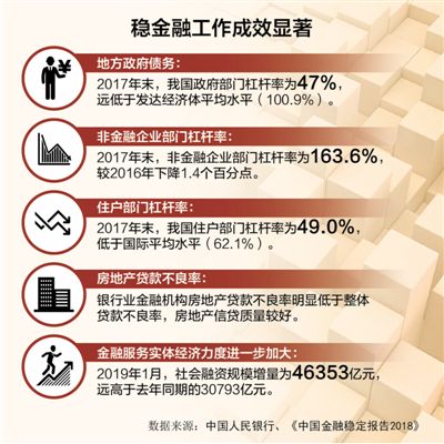 完善穩(wěn)金融的宏觀經(jīng)濟政策框架。財政政策、貨幣政策等宏觀經(jīng)濟政策與穩(wěn)金融之間存在很強的內(nèi)在關(guān)聯(lián)性。要根據(jù)去年底召開的中央經(jīng)濟工作會議的部署,強化財政政策和貨幣政策的逆周期調(diào)節(jié)作用,繼續(xù)實施積極的財政政策和穩(wěn)健的貨幣政策,著力穩(wěn)定總需求,為穩(wěn)金融創(chuàng)造良好的宏觀經(jīng)濟環(huán)境。積極的財政政策要加力提效,實施更大規(guī)模的減稅降費,較大幅度增加地方政府專項債券規(guī)模;穩(wěn)健的貨幣政策要松緊適度,保持流動性合理充裕,改善貨幣政策傳導機制,提高直接融資比重,解決好民營企業(yè)和小微企業(yè)融資難、融資貴問題。
