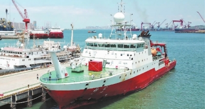 堅持和發(fā)展中國特色社會主義,實現(xiàn)中華民族偉大復(fù)興,必須堅定不移貫徹科教興國戰(zhàn)略和創(chuàng)新驅(qū)動發(fā)展戰(zhàn)略,堅定不移走科技強國之路。圖為靠泊在山東青島母港的“科學(xué)”號準(zhǔn)備解纜起航。