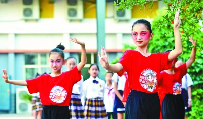 文化興國運興,文化強民族強。圖為河北省石家莊市裕華西路小學(xué)舉辦以“弘揚戲曲藝術(shù) 傳承經(jīng)典國粹”為主題的校園戲曲節(jié)活動。新華社發(fā)