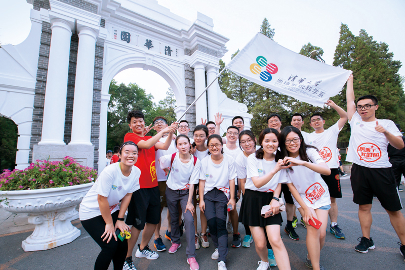 每年的畢業(yè)季,清華大學(xué)都會舉行畢業(yè)長跑,即將離開母校的學(xué)子們沿著精心設(shè)計(jì)的路線,依次跑過那些承載著清華記憶的場所,重溫“自強(qiáng)不息 厚德載物”的校訓(xùn),上好離校前的“最后一課”。圖為2018年7月4日,畢業(yè)生們在主題為“擁抱新時(shí)代 青春正起航”的長跑活動中在二校門前合影。 清華大學(xué) 李浩然/攝