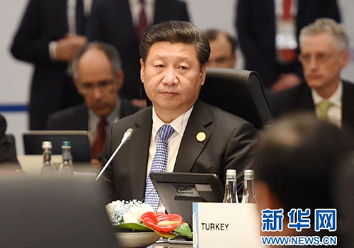 2015年11月15日,二十國集團領導人第十次峰會在土耳其安塔利亞舉行。國家主席習近平出席并發(fā)表題為《創(chuàng)新增長路徑 共享發(fā)展成果》的重要講話。這是習近平出席第一階段會議。新華社記者李學仁攝
