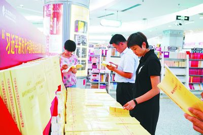 為配合“不忘初心、牢記使命”主題教育,北京圖書大廈專門設(shè)立《習(xí)近平新時(shí)代中國(guó)特色社會(huì)主義思想學(xué)習(xí)綱要》圖書專臺(tái),連日來深受讀者喜愛。圖為7月25日,讀者正在認(rèn)真閱讀《習(xí)近平新時(shí)代中國(guó)特色社會(huì)主義思想學(xué)習(xí)綱要》一書。本報(bào)記者 閆匯芳攝/光明圖片