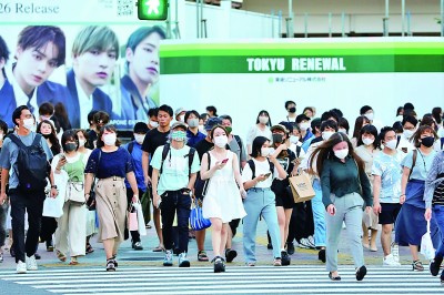 8月20日,在日本東京,行人戴口罩走在澀谷街頭。新華社記者 杜瀟逸攝