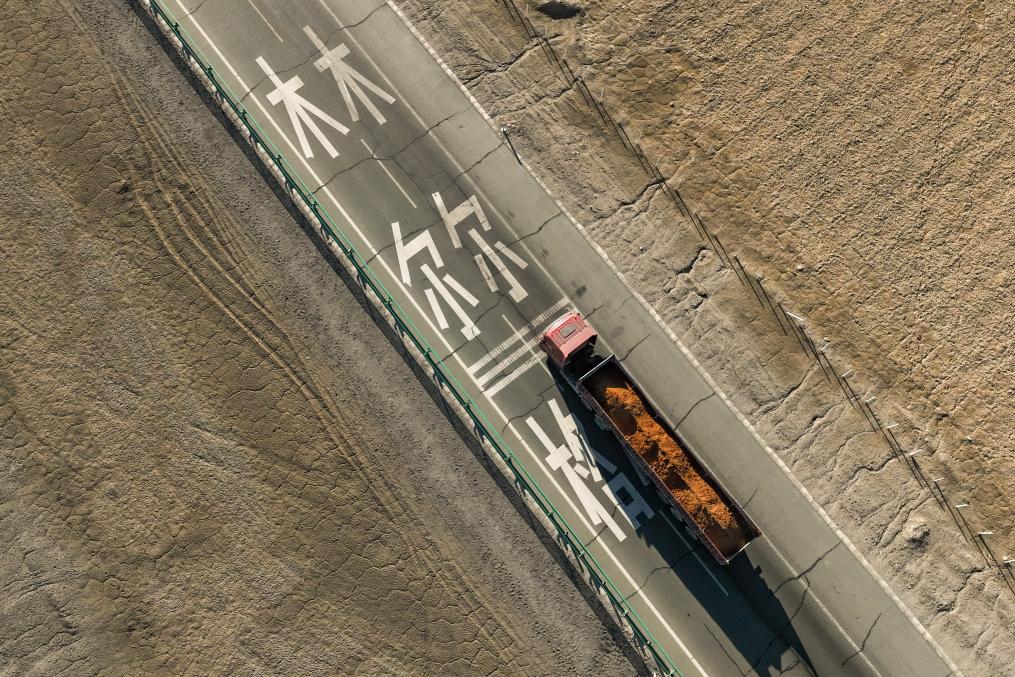 “經(jīng)過(guò)改建,如今的鹽橋已經(jīng)與普通柏油路沒(méi)有區(qū)別?!鼻嗪J」肪指駹柲竟范味伍L(zhǎng)賈國(guó)平拿著石碑下方干裂翹起的一片鹽蓋說(shuō),路的最下方就是它。這條路從上到下依次是鋪筑的瀝青混凝土面層、水泥穩(wěn)定基層、砂礫層和天然鹽蓋。鹽蓋下方就是深達(dá)10至20米的結(jié)晶鹽和晶間鹵水,公路實(shí)際上就像一座橋浮在鹵水上,就此形成了“車在鹽上走,水在鹽下流”的奇觀。