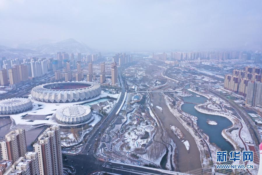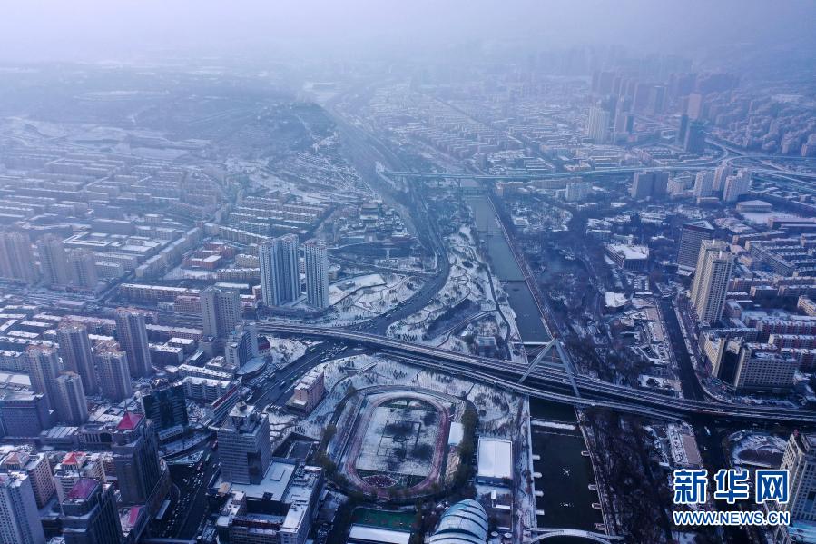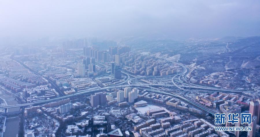 受北方冷空氣影響,11月20日夜間,青海省東北部出現(xiàn)降雪、降溫天氣過(guò)程。雪后從空中俯瞰,高原古城西寧被白雪覆蓋。
