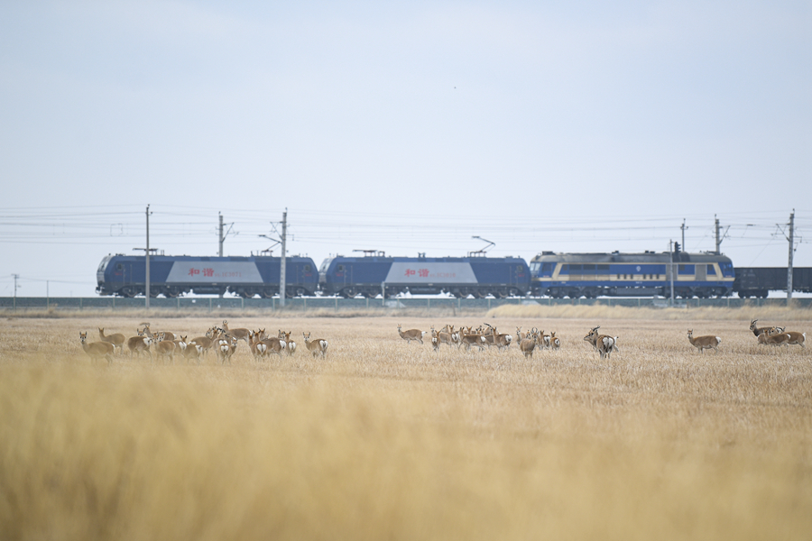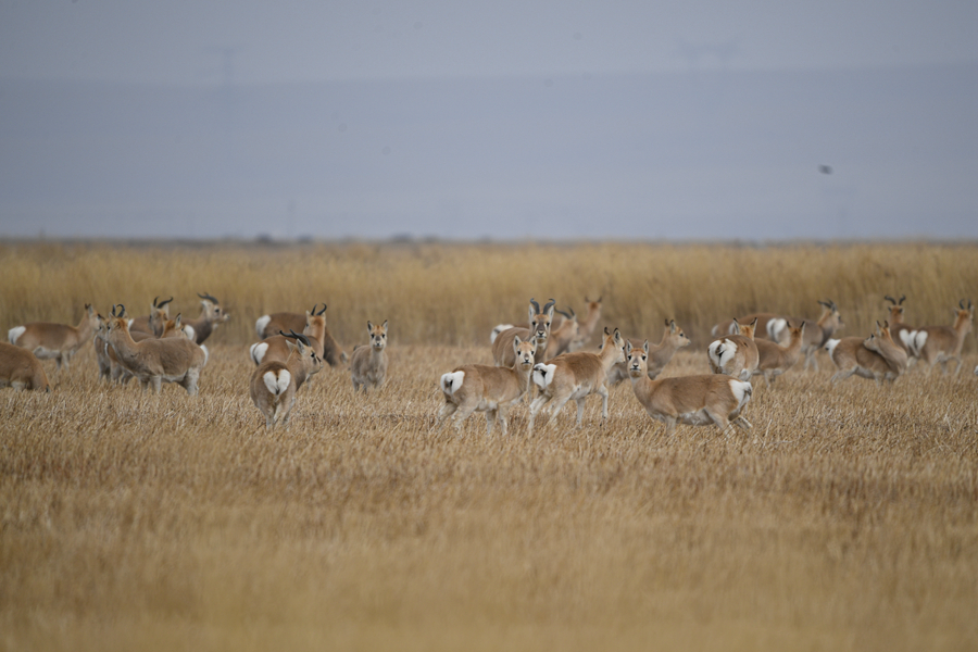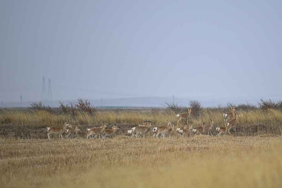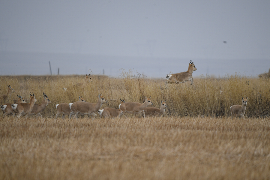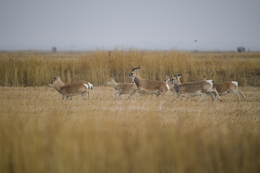 11月20日,一群普氏原羚在青海湖普氏原羚特護(hù)區(qū)內(nèi)活動。新華網(wǎng) 潘彬彬 攝