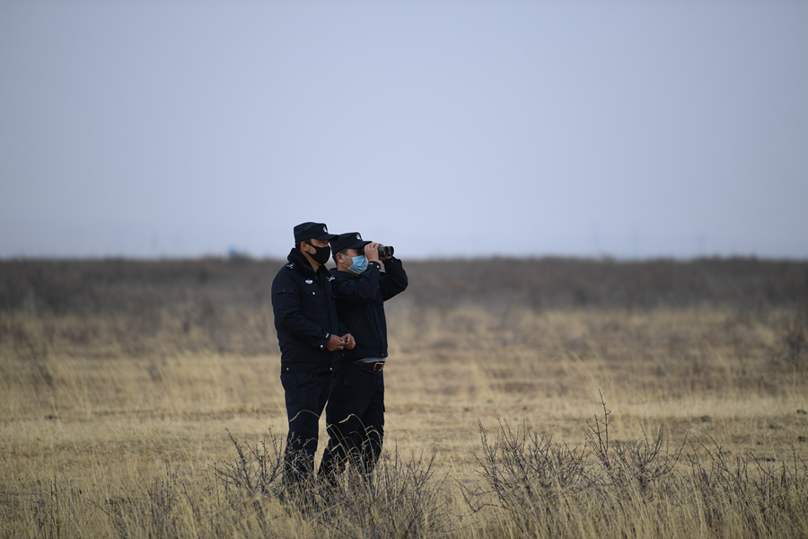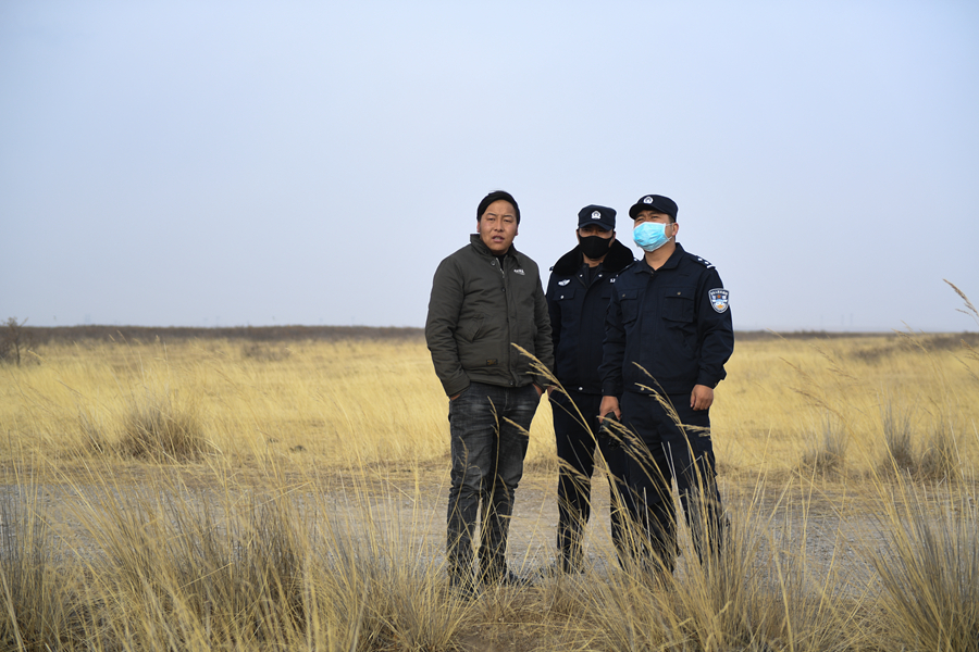 11月20日,剛察縣森林公安局哈爾蓋派出所民警秦輝武(右一)和輔警東知布在特護(hù)區(qū)內(nèi)進(jìn)行日常巡護(hù)。新華網(wǎng) 潘彬彬攝