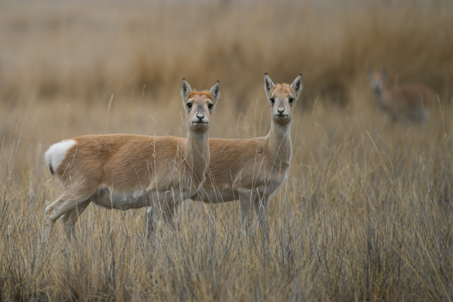 11月20日,東知布拍攝在特護(hù)區(qū)內(nèi)活動的普氏原羚。新華網(wǎng) 潘彬彬攝