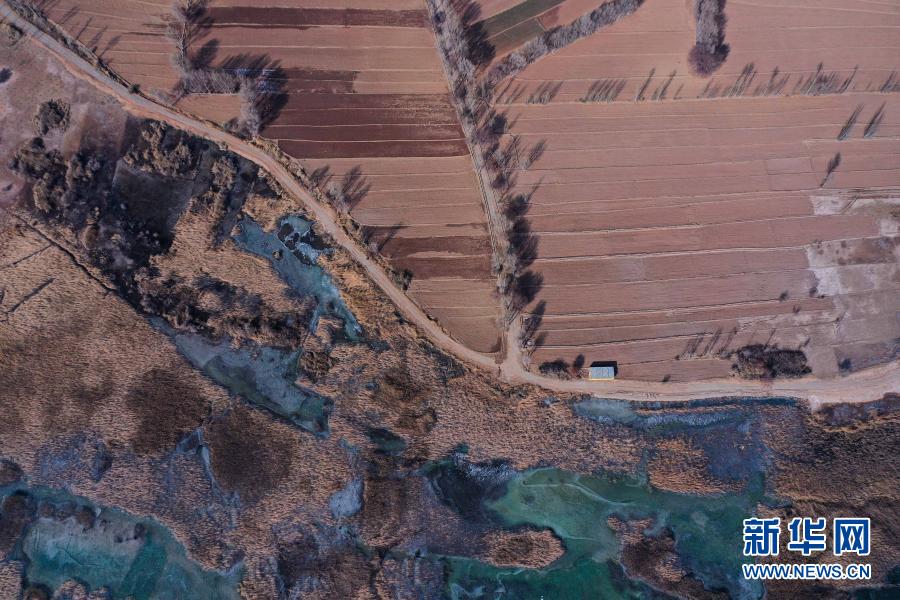 這是12月11日拍攝的千姿湖濕地公園景色(無人機照片)。新華社記者 吳剛 攝