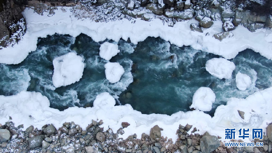 這是青海省祁連縣境內的黑河峽谷風光(12月10日攝,無人機照片)。新華社記者 張宏祥 攝