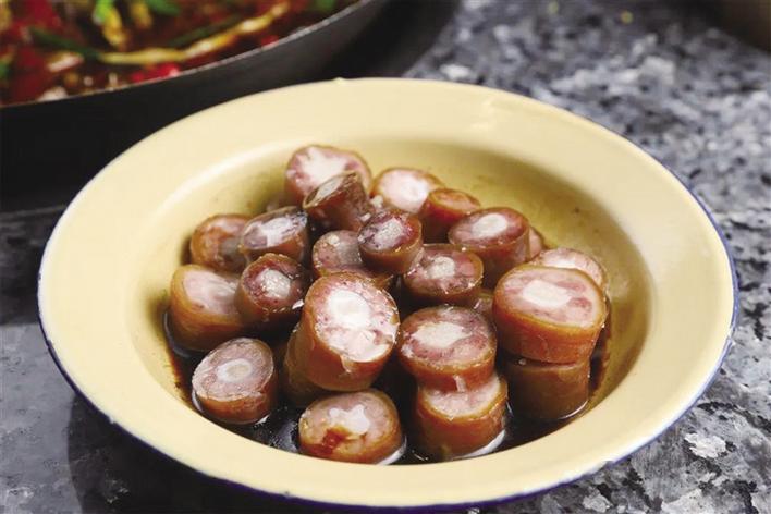 12月9日晚,記者和品鑒團(tuán)成員們來(lái)到外婆怪味雞餐廳。走進(jìn)店內(nèi),一股懷舊風(fēng)撲面而來(lái)——擺滿食材的木架、古式的燈罩、茅草屋、實(shí)木桌椅,讓人仿佛置身于農(nóng)家小院。該餐廳就餐區(qū)分為一樓大廳食材展示區(qū)、二樓大廳用餐區(qū)以及包間區(qū),每層樓都各有特色,環(huán)境十分雅致。“非常喜歡這家店的裝修風(fēng)格,店里布置的實(shí)木亭、老式電視、音箱以及那些高高掛起的腌臘肉都讓我感覺(jué)非常親切,也讓我想起了小時(shí)候在四川老家生活的時(shí)光。”品鑒團(tuán)成員李女士說(shuō)。