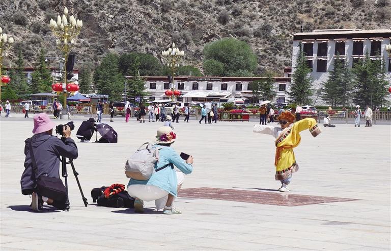 記者還了解到,今年以來西藏比較熱門的景區(qū)(點)有布達(dá)拉宮、大昭寺、羅布林卡、巴松措、雅魯藏布大峽谷、羊卓雍措等。在布達(dá)拉宮廣場前,記者看到不少旅游團以及結(jié)伴騎行來拉薩游玩的游客,布達(dá)拉宮廣場恢復(fù)了往日的熱鬧?!皝淼轿鞑匚也虐l(fā)現(xiàn),這里的風(fēng)景真的不同于其他地方,我們都非常喜歡這里,今天一早我就來到布達(dá)拉宮,實現(xiàn)了我人生的一大愿望?!眮碜詢?nèi)蒙古的郭先生說道。