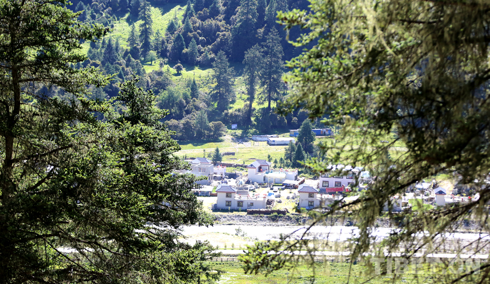 圖為嶄新的房屋矗立在魯朗林海郁郁蔥蔥的樹(shù)木之間 攝影:王佳豪