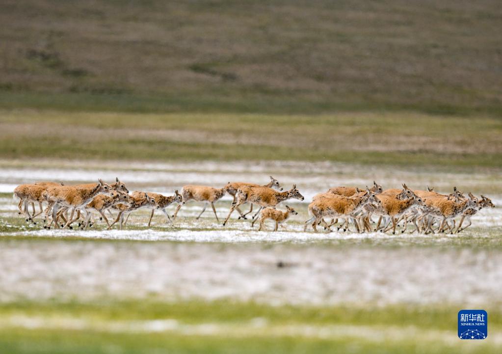 這是在羌塘國(guó)家級(jí)自然保護(hù)區(qū)內(nèi)拍攝的藏羚羊(7月11日攝)。新華社記者 孫非 攝