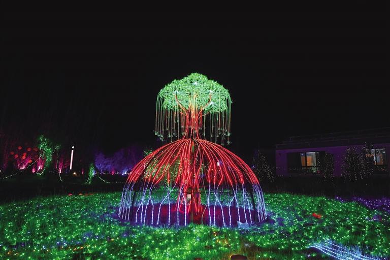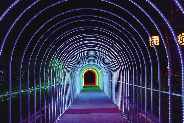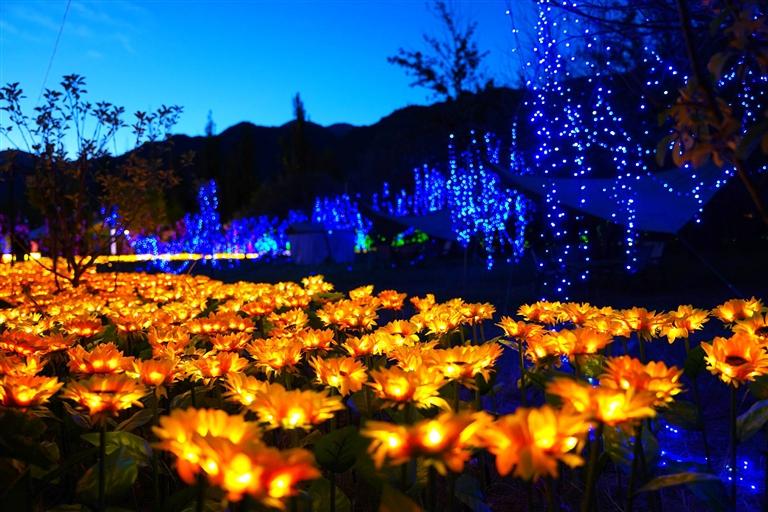 象雄美朵首屆國(guó)潮光影秀分為星際迷航、迷霧森林、遇見(jiàn)·螢火之光、激情北極光、時(shí)光隧道五個(gè)板塊。隨著彩燈亮起,星辰、太空人、火箭、綠森林、花海、孔雀等景觀清晰地展現(xiàn)在大家面前,通過(guò)藝術(shù)與科技巧妙地結(jié)合,立體呈現(xiàn)各種自然場(chǎng)景。