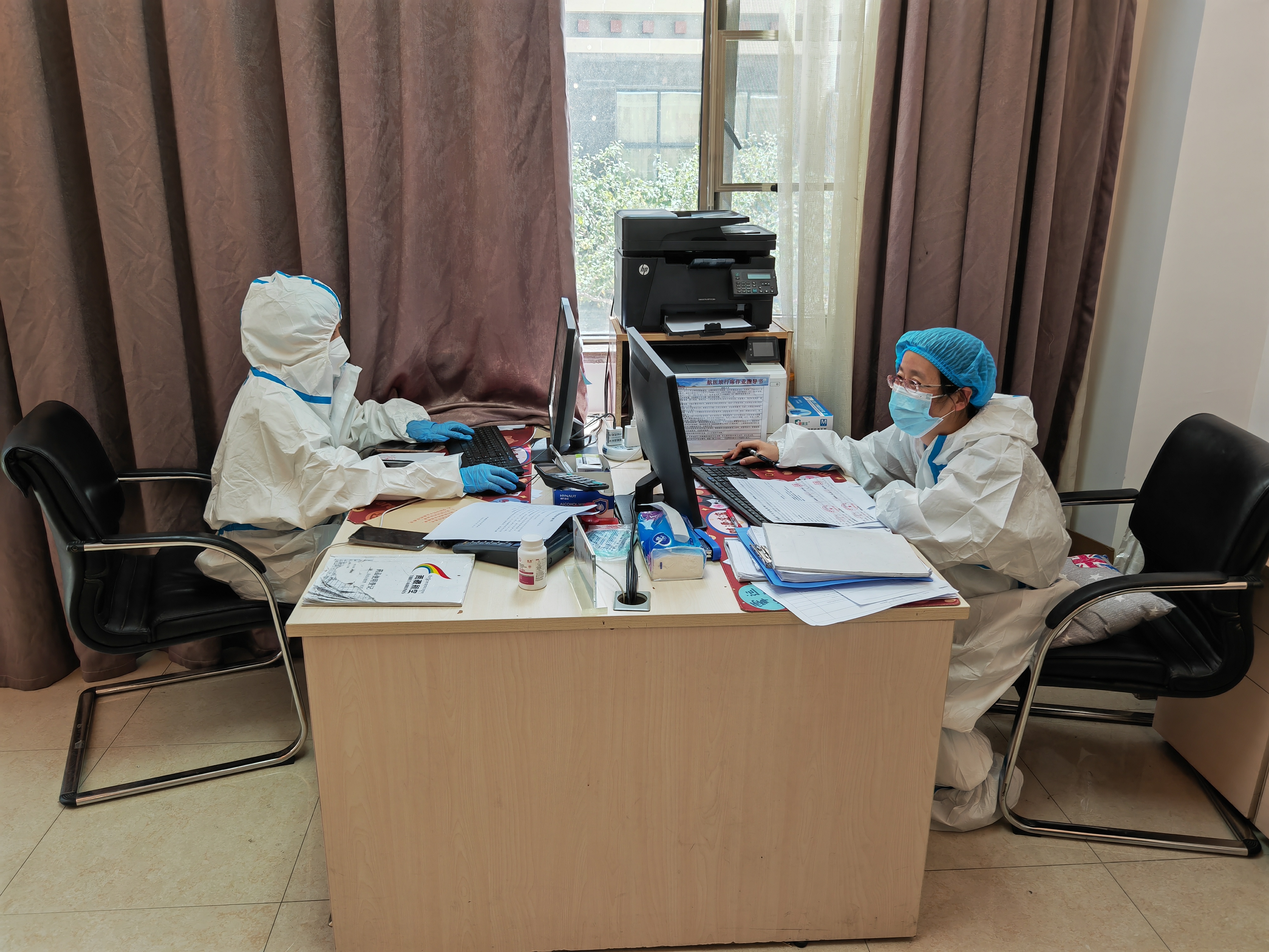 拉薩基地航醫(yī)正在緊鑼密鼓地工作中。