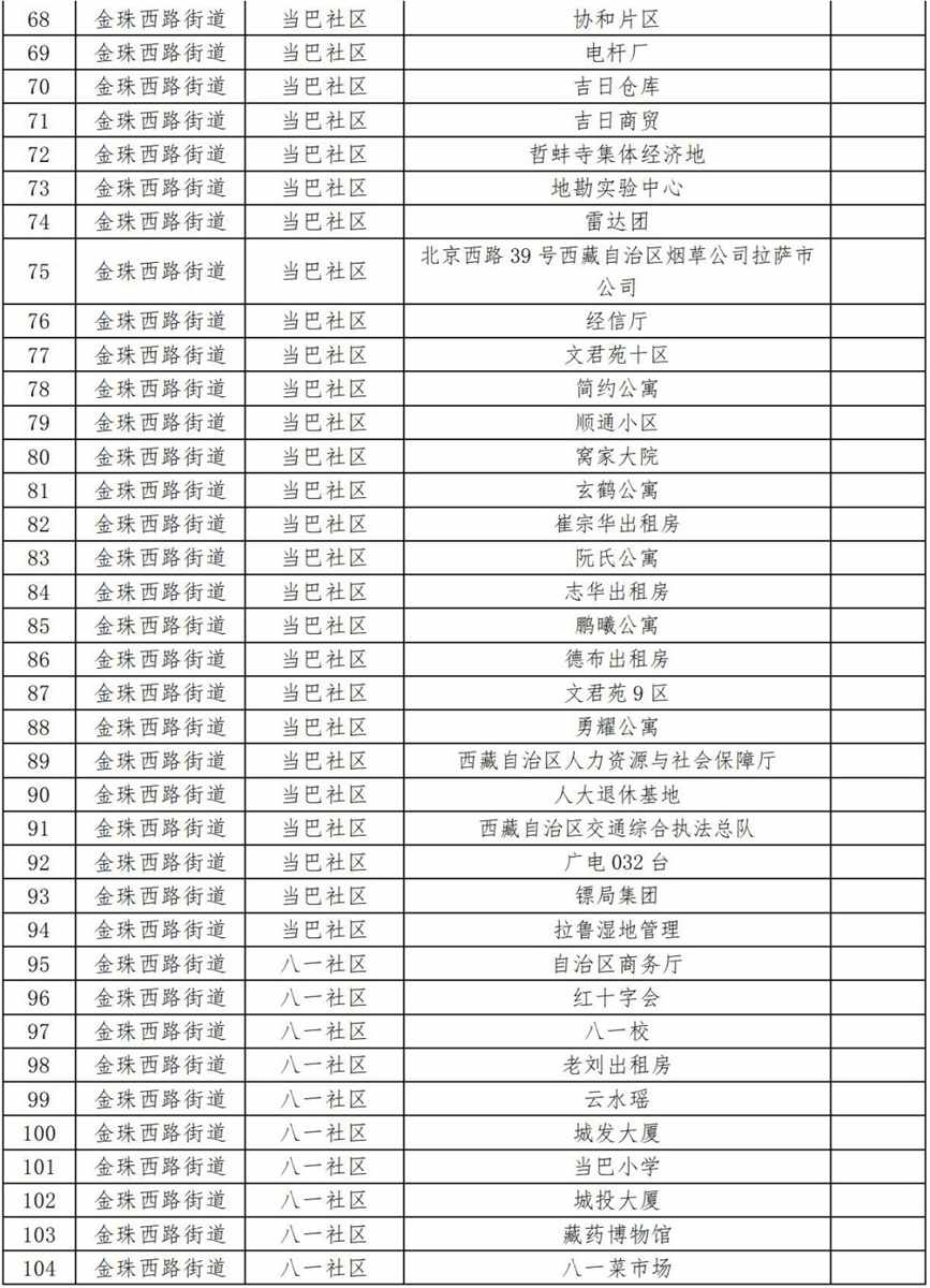 36.金珠西路街道當(dāng)巴社區(qū)(除部分點(diǎn)位,詳見(jiàn)附件);