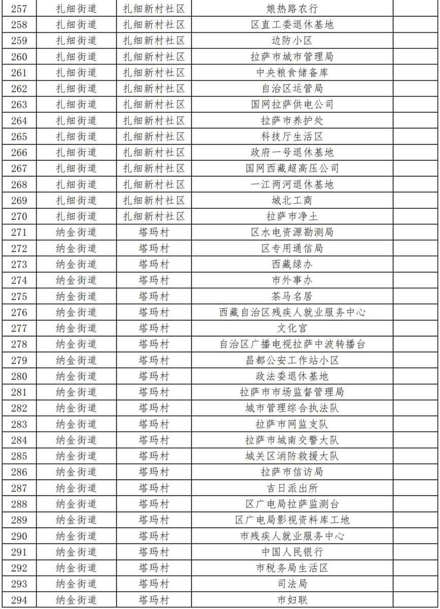 18.扎細(xì)街道雄嘎社區(qū)(自治區(qū)鄉(xiāng)村振興局、自治區(qū)外事辦、童嘎語(yǔ)言學(xué)校、拉薩市人社局、自治區(qū)電力科學(xué)研究院、拉薩支隊(duì)生活區(qū));