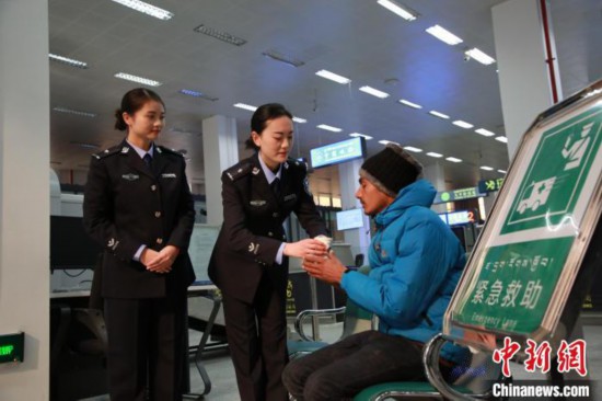 2018年12月,吉隆出入境邊防檢查站移民管理警察熱情服務(wù)緊急救助旅客。 肖富貴 攝