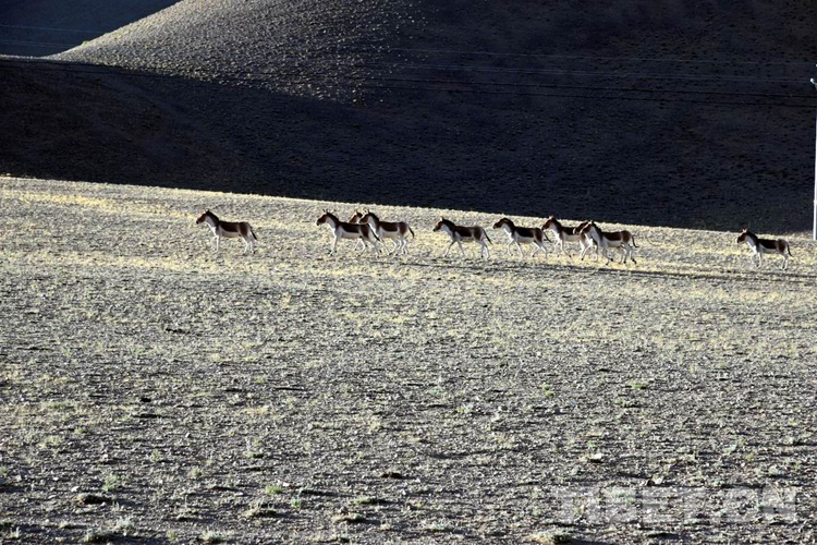 在從獅泉河去往改則縣城的路上,我們看到了一群藏野驢在羌塘草原上無(wú)憂無(wú)慮地奔跑,它們身姿矯健,棕黃色的背部和白色的腹部在朝霞的映襯下顯得格外美麗,那種獨(dú)屬于原野的又颯又帥的感染力令大家不由自主地感嘆:太壯觀了!