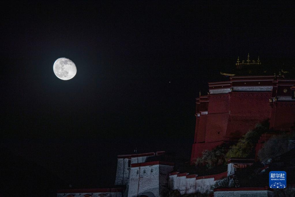 11月11日晚,一次賞心悅目的火星合月亮相天宇。這是在西藏拉薩市布達(dá)拉宮附近,記錄下的這幕“星月童話”。新華社記者 孫非 攝